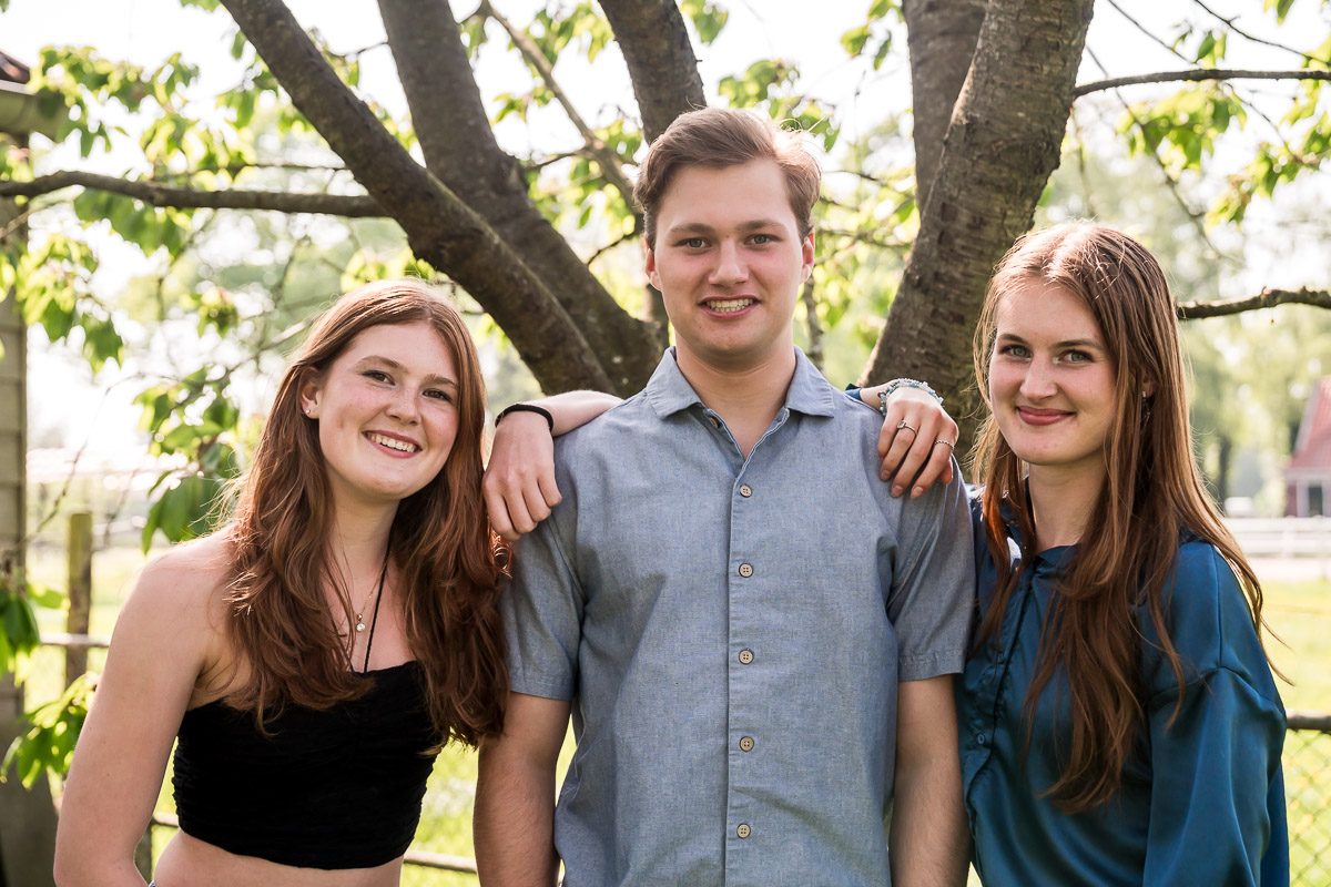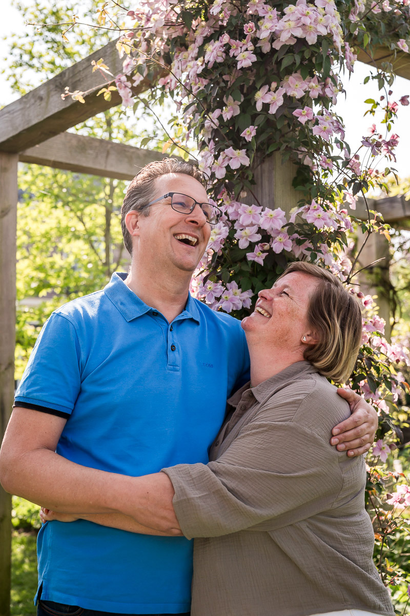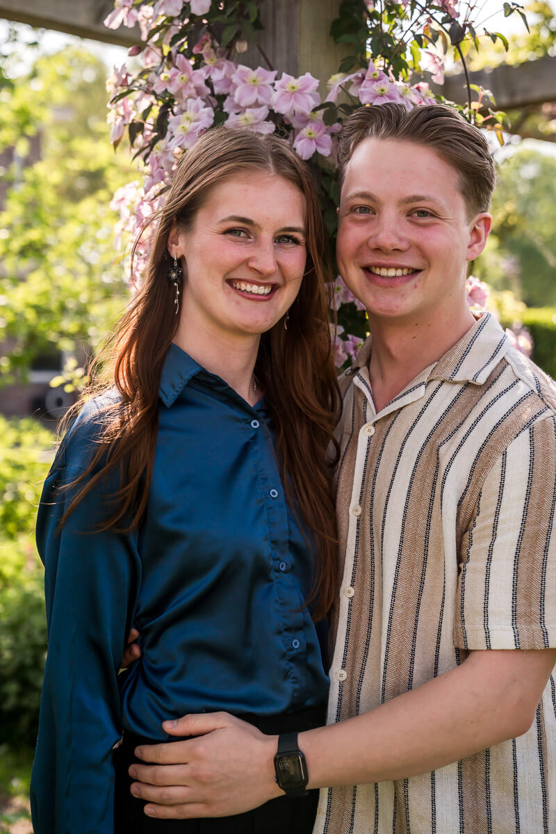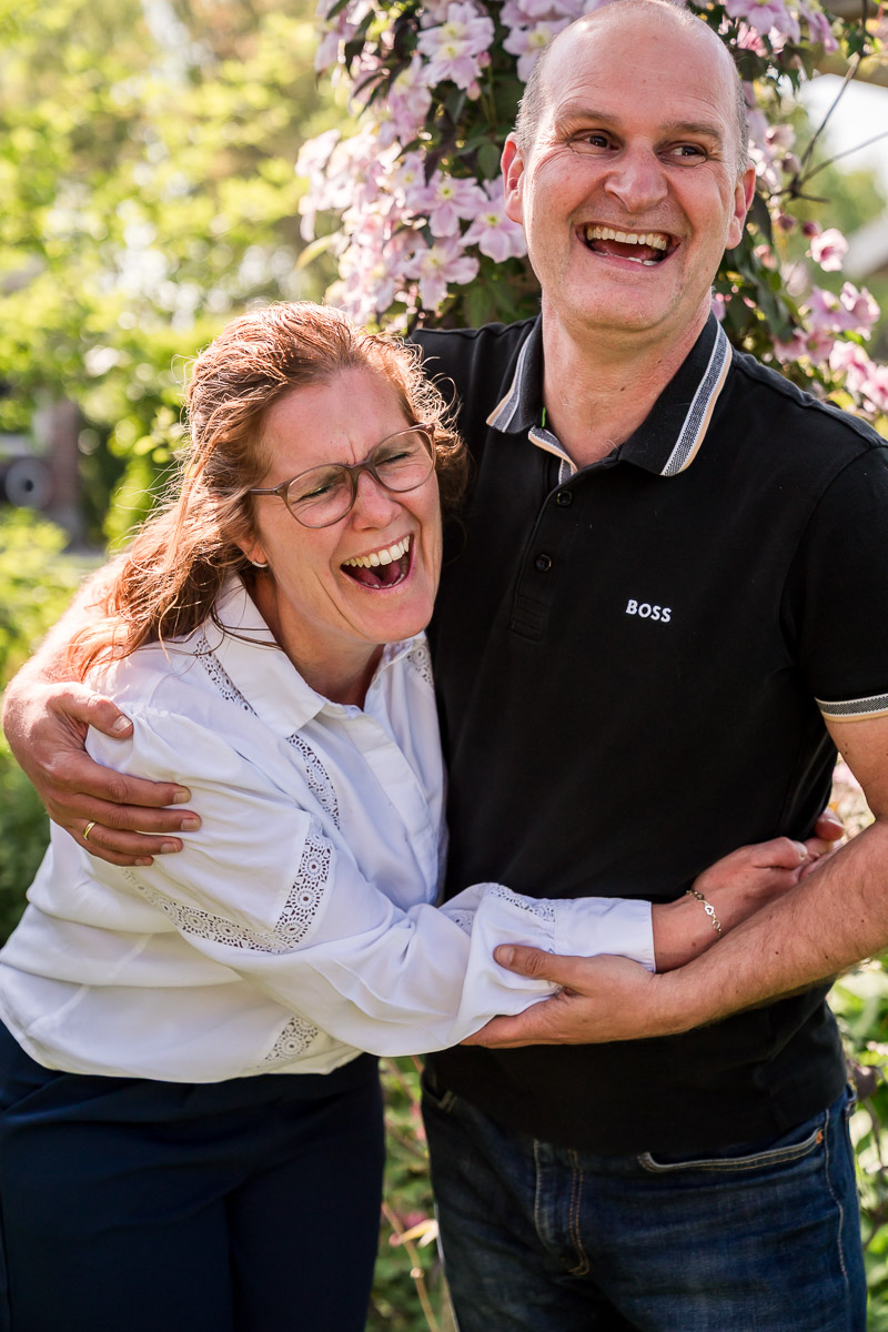 Voor deze familieshoot kozen we de mooie tuin in de Beemster. Geen standaard fotolocatie, maar een plek met persoonlijke waarde. Dat is precies hoe ik werk. De locatie kiezen we altijd in overleg. Dat kan een tuin zijn, een park, het strand of gewoon bij jullie thuis. Ik heb weinig nodig om sterke beelden te maken. Het gaat niet om de plek, maar om wat er gebeurt op die plek. Juist wanneer mensen zich op hun gemak voelen, ontstaan de mooiste momenten vanzelf.